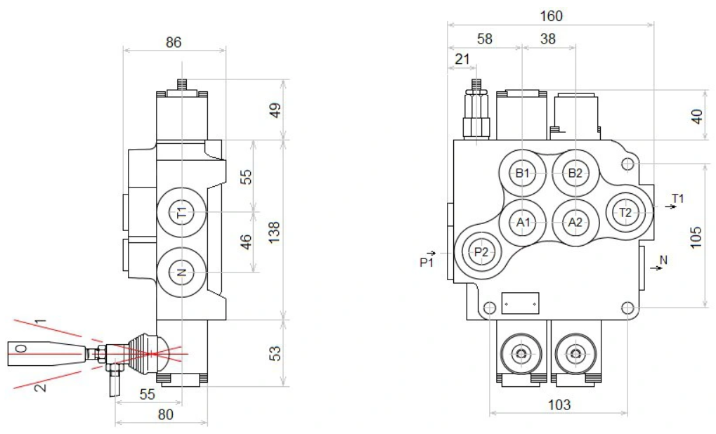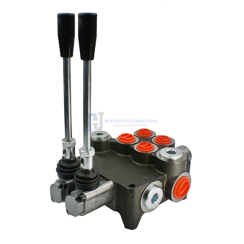 2-szekciós hidraulikus elosztó 80L 1x kettős működésű 1x reteszes szekció hidraulikus motor vezérléséhez