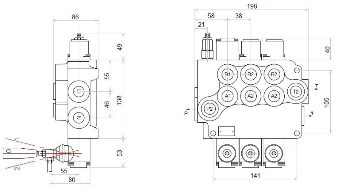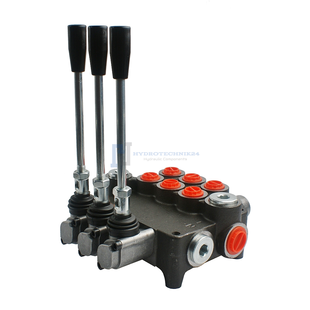3-szekciós hidraulikus elosztó 80L 2x kettős működésű 1x reteszes szekció hidraulikus motor vezérléséhez