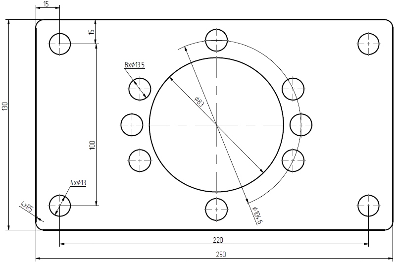 A hidraulikus motor alapvető méreteit ábrázoló rajz: