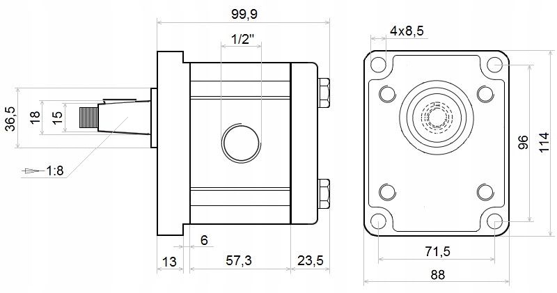 2. csoportba tartozó hidraulikus fogaskerekes szivattyú, bal irányú, űrtartalom: 8cm3/ford., teljesítmény (1500ford/perc): 12L/perc