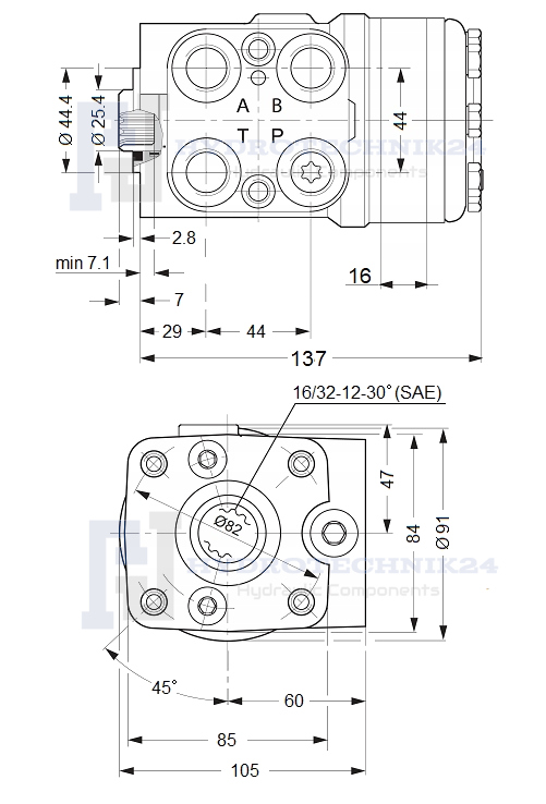 Csatlakozók: P , T , A , B belső menetek [BSP]: 1/2"