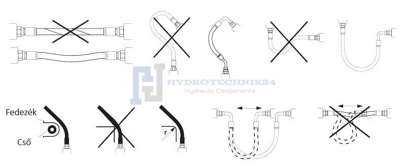 A hidraulikus vezeték vasalt, átfújt (kompresszorból érkező nyomással kitisztított), csatlakoztatásra és rendszerben való működésre kész. A kész hidraulikus vezetékhez az alábbi elemek tartoznak: eredeti, megerősített és rugalmas hidraulikus tömlő, valamint hidraulikus végződések. Mindegyik alkatrész ellenáll az időjárási viszonyoknak és a rozsdának.
