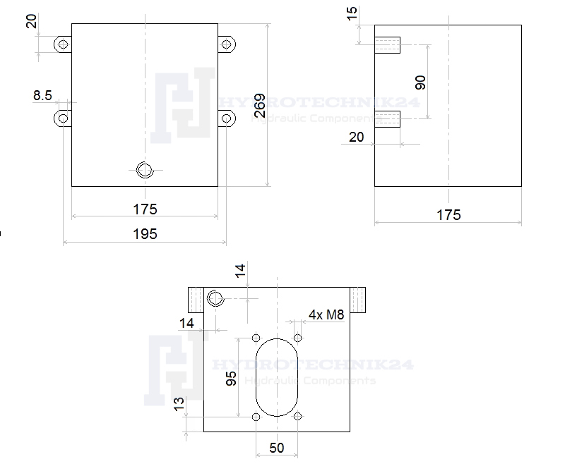 Kínált hidraulikatartály műszaki rajza: