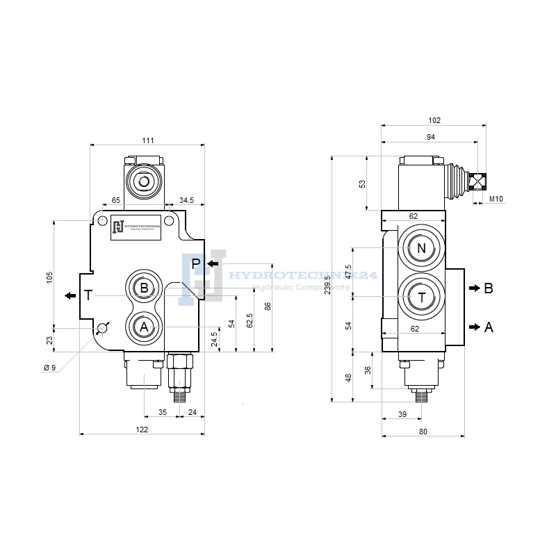 1-szekciós kettős működésű hidraulikus elosztó 80L - HT24