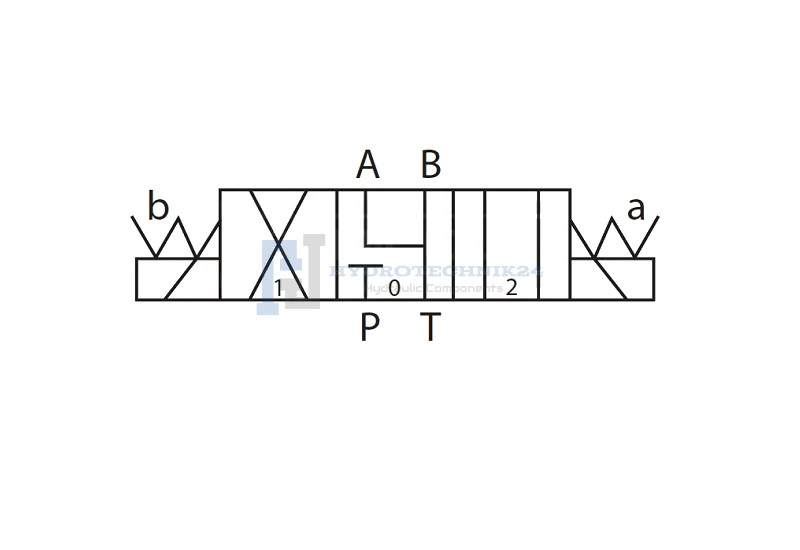 - Konfiguráció: két tekercs 12V DC, szelep csúszka 3-pozíciójú típus J, rugóval alaphelyzetben rögzítve