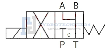 - Konfiguráció: egy tekercs 12V DC, szelep csúszka 2-pozíciójú típus JA, rugóval alaphelyzetben rögzítve