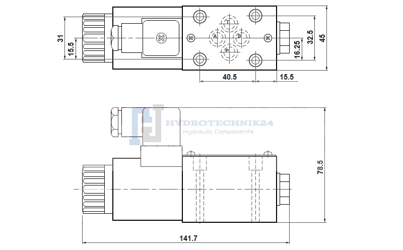 Hidraulikus Elektromágneses szelep CETOP 3 NG6 12V. Típus szelep csúszka: Y - ATOS