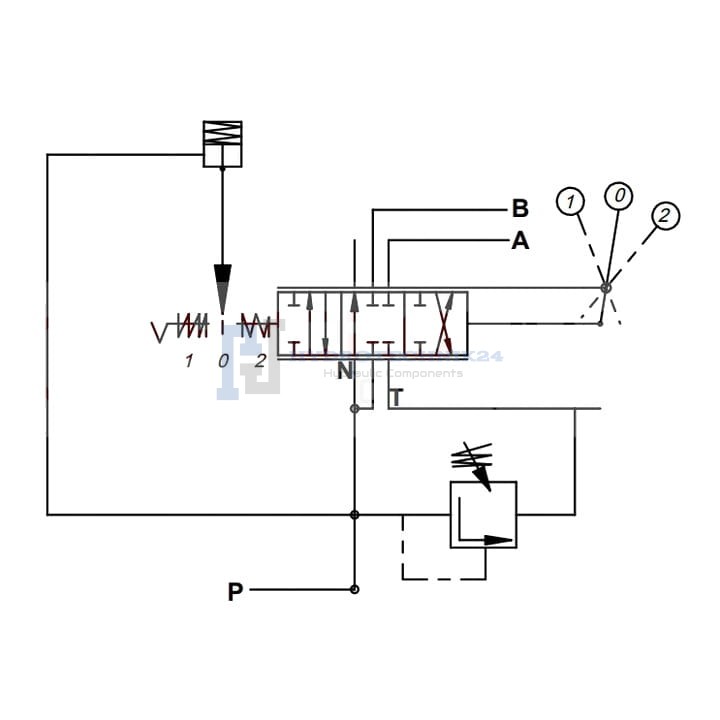 Speciálisan fahasítóhoz fejlesztve. A fa hasítása során biztonsági okokból szükséges a vezérlőszelep karjának megtartása. A dugattyú visszatérése a retesz függvényében áll, amely a henger teljes behúzása után automatikusan visszapattan és visszatér a kiindulási pozícióba. Ez a megoldás lehetővé teszi a fa törzsének cseréjét és a faforgács eltakarítását a dugattyú visszahúzódása közben. Ezenkívül a dugattyú visszatérése után a zár automatikusan visszaugrik és tehermentesíti a hidraulikus szivattyút, így a hidraulikus rendszer nem melegszik fel. Semleges pozícióban az olaj szabadon áramlik a hidraulikus elosztón keresztül, és visszatér az olajtartályba.