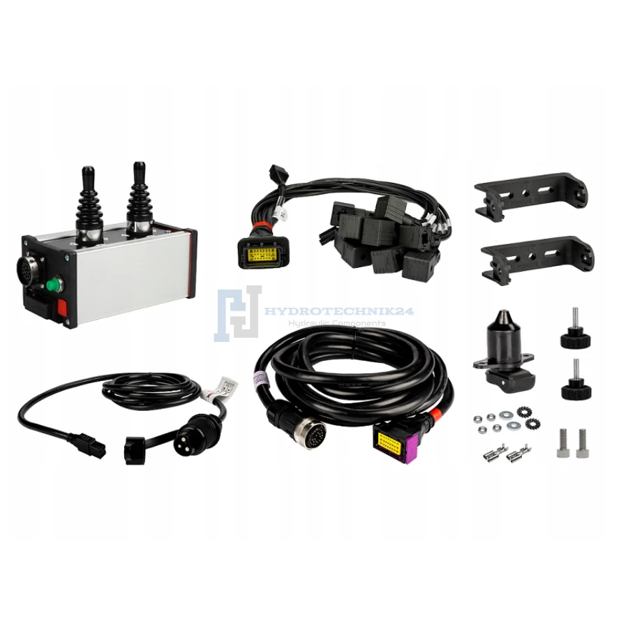 Vezérlőpanel 2 Öt állású joystickkel. A készlet tartalmaz egy tápkábelt, egy tápcsatlakozót, egy rögzítő konzolt és elektromos csatlakozókkal ellátott 7m kábel
