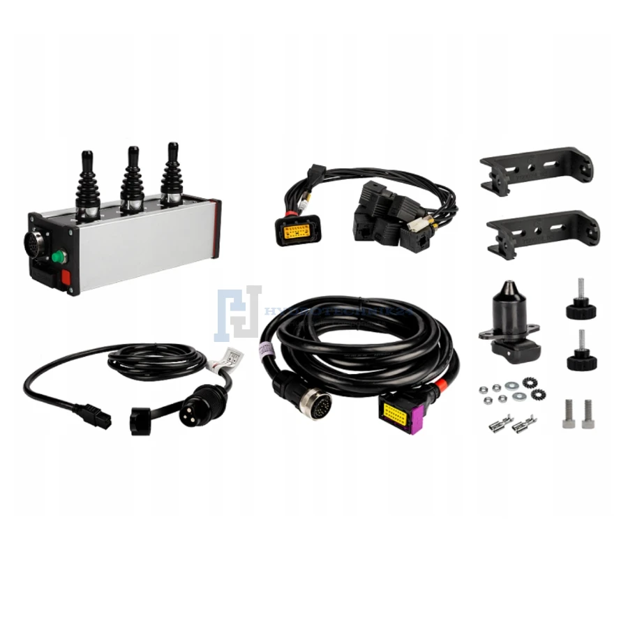 Vezérlőpanel 3 három állású joystickkel. A készlet tartalmaz egy tápkábelt, egy tápcsatlakozót, egy rögzítő konzolt és elektromos csatlakozókkal ellátott 5m kábel