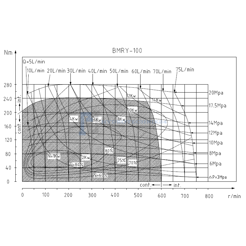 A hidraulikus motor származásától és a gyártótól függően különböző szimbólumokkal nevezik meg, többek között: BMR, SMR, OMR, BMP, SMP, OMP, EMP és még sok más. BMRY 100 hidraulikus motor megnövelt tengelyforgató nyomatékkal, nagy indítóteljesítményű meghajtást igénylő mezőgazdasági és ipari készülékekhez. A hidraulikus motor változtatható forgásiránnyal rendelkezik és sorba kapcsolható más hidraulikus motorokkal. A tartós kialakítású konstrukciónak valamint a leválasztó- és visszacsapó szelepeknek köszönhetően a motor hosszú élettartalomra képes és példátlan tömítettség jellemző rá még rendkívül nehéz üzemeltetési körülmények közt is. A kiváló minőségű tömítések nagyon magas nyomáson és nagy nyomatékkal is üzembiztosan üzemelnek. Modern kialakításának köszönhetően a motor nagyon csendes és egyenletesen üzemel.