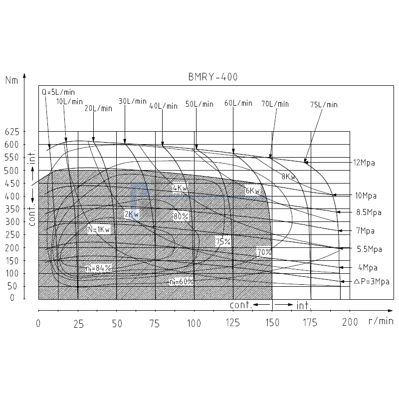 A hidraulikus motor származásától és a gyártótól függően különböző szimbólumokkal nevezik meg, többek között: BMR, SMR, OMR, BMP, SMP, OMP, EMP és még sok más. BMRY 400 hidraulikus motor megnövelt tengelyforgató nyomatékkal, nagy indítóteljesítményű meghajtást igénylő mezőgazdasági és ipari készülékekhez. A hidraulikus motor változtatható forgásiránnyal rendelkezik és sorba kapcsolható más hidraulikus motorokkal. A tartós kialakítású konstrukciónak valamint a leválasztó- és visszacsapó szelepeknek köszönhetően a motor hosszú élettartalomra képes és példátlan tömítettség jellemző rá még rendkívül nehéz üzemeltetési körülmények közt is. A kiváló minőségű tömítések nagyon magas nyomáson és nagy nyomatékkal is üzembiztosan üzemelnek. Modern kialakításának köszönhetően a motor nagyon csendes és egyenletesen üzemel.
