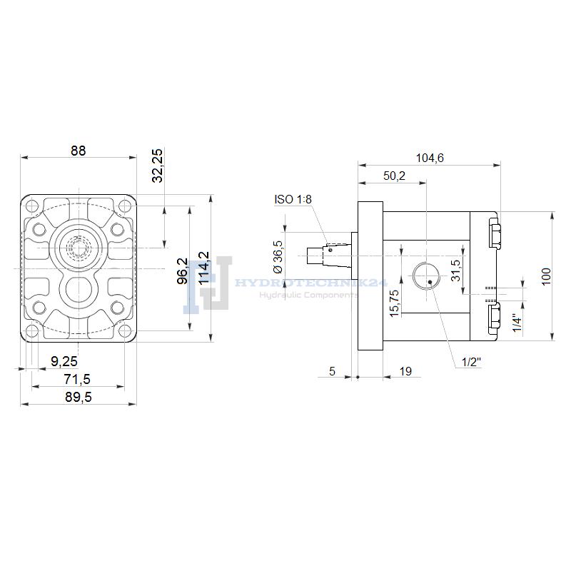 A fogaskerekes hidraulikus motor folyadékszállítása 11 cm³/fordulat, maximális fordulatszáma 3500 fordulat/perc, csapágykarimával ellátva