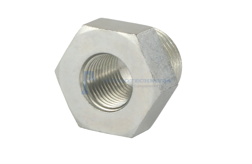 Testéhez csavarozható különbségi hüvely. Lehetővé teszi a menet méretének csökkentését, így egy kisebb menetű elemet lehet csavarozni egy sokkal nagyobb menetes nyílás. Ideális szűrők, nyomásmérők, érzékelők és egyéb hidraulikus tartozékok rögzítésére.