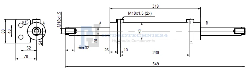 Hidraulikus szervokormány henger. 2x100 mm-es lökettel. Keresztirányban szerelt