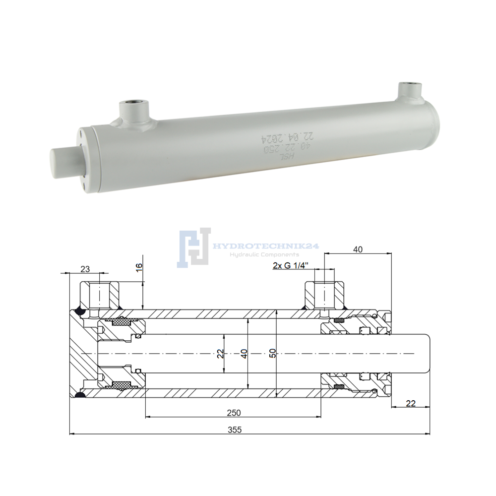 Kettős működésű hidraulikus munkahenger 40/22, lökethossz: 250mm, rögzítés nélküli standard