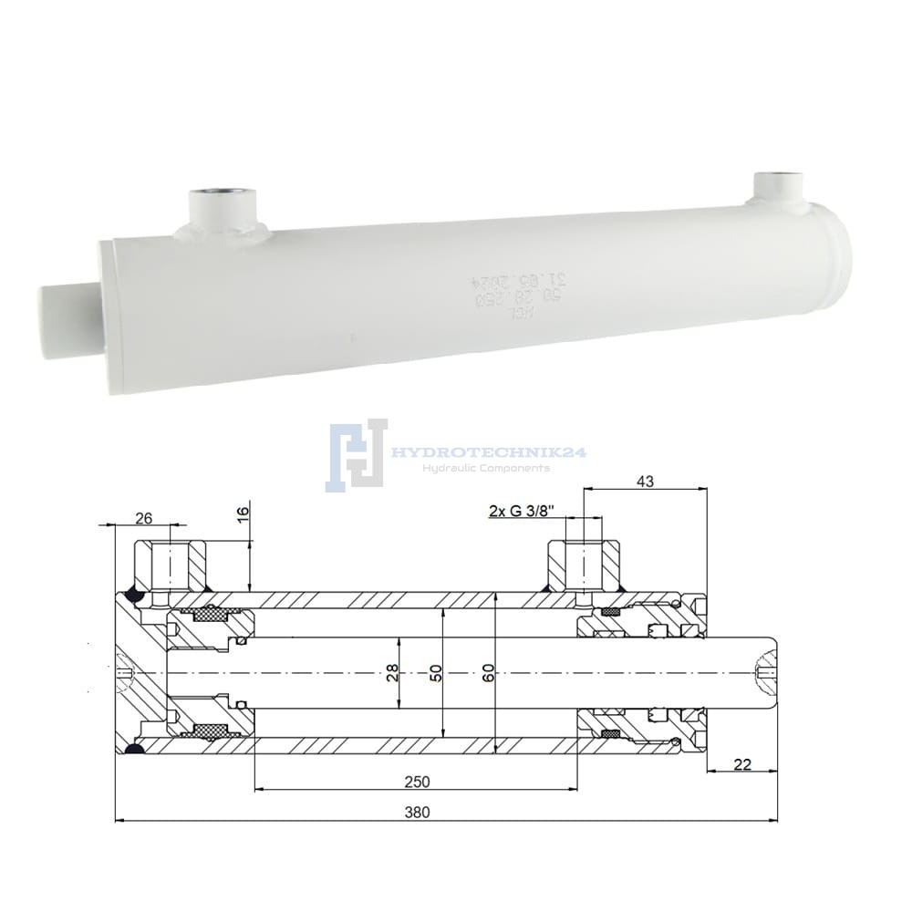Kettős működésű hidraulikus munkahenger 50/28, lökethossz: 250mm, rögzítés nélküli standard