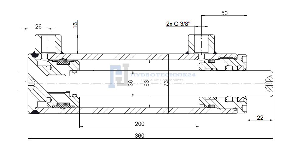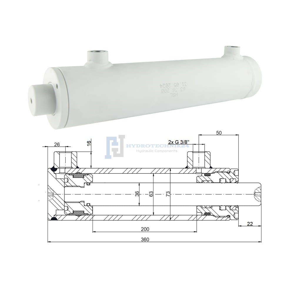 Kettős működésű hidraulikus munkahenger 63/36, lökethossz: 200mm, rögzítés nélküli standard