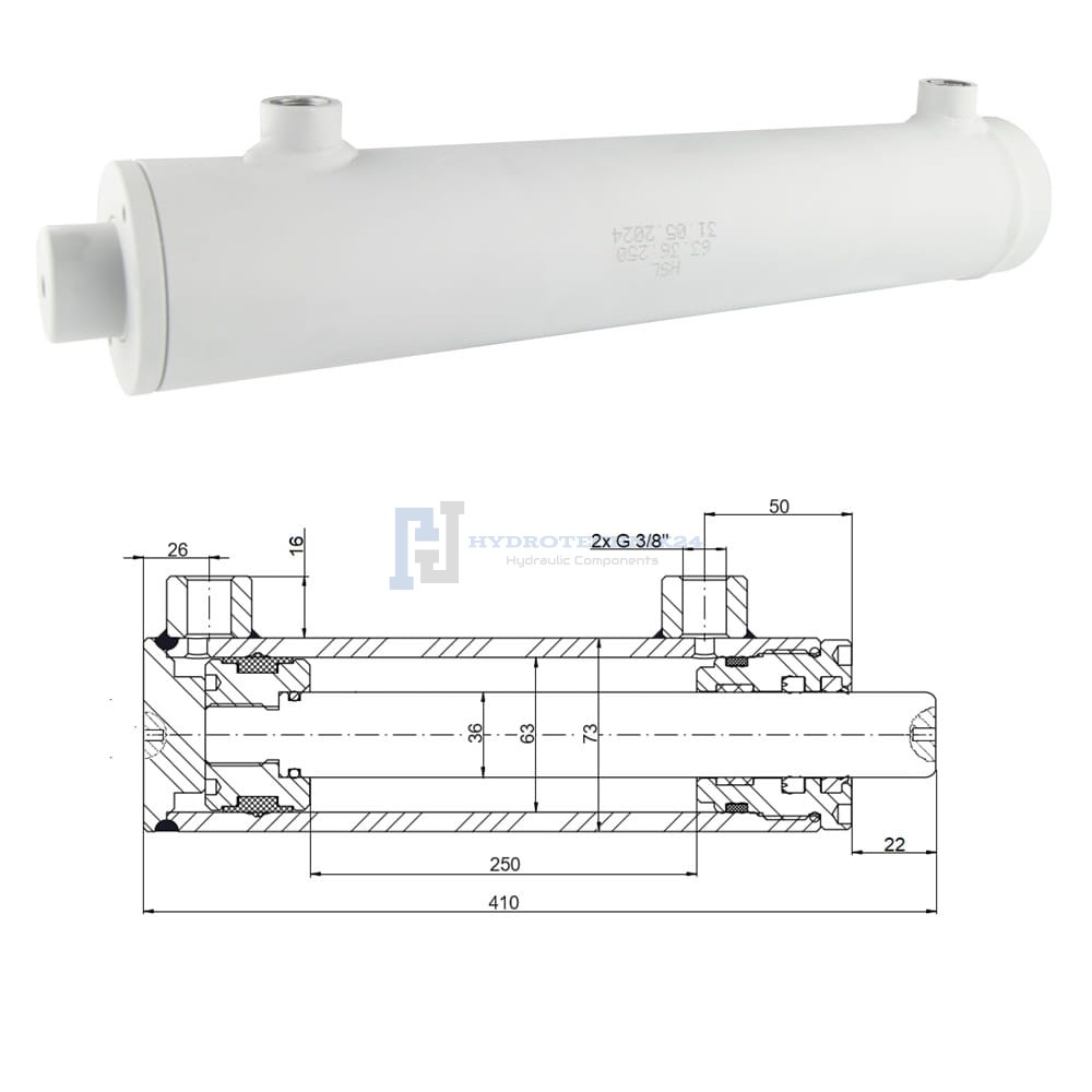 Kettős működésű hidraulikus munkahenger 63/36, lökethossz: 250mm, rögzítés nélküli standard