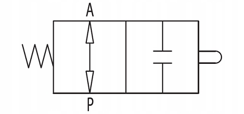 A szelep alaphelyzetben nyitva van, azaz gyári helyzetben, az olajáram mindkét irányban szabad, a csúszó mechanikus megnyomása bezárja az olajáramot mindkét irányban.