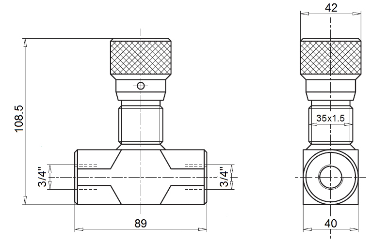 VRFB 90 hordós szelep állítható fojtószeleppel kétoldalon. Menetekkel: 3/4”, térfogatáram: 80L/perc, maximális nyomás: 280bar