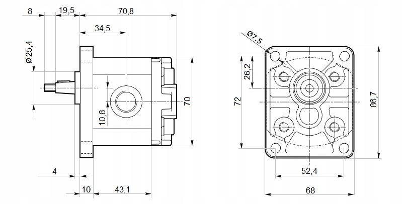 A hidraulikus szivattyú alapvető méreteit bemutató rajz: