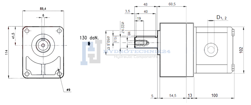 2. csoportba tartozó hidraulikus fogaskerekes szivattyú, bal irányú, űrtartalom: 16cm3/ford., teljesítmény (1500ford/perc): 24L/perc, csapágykarimával ellátva