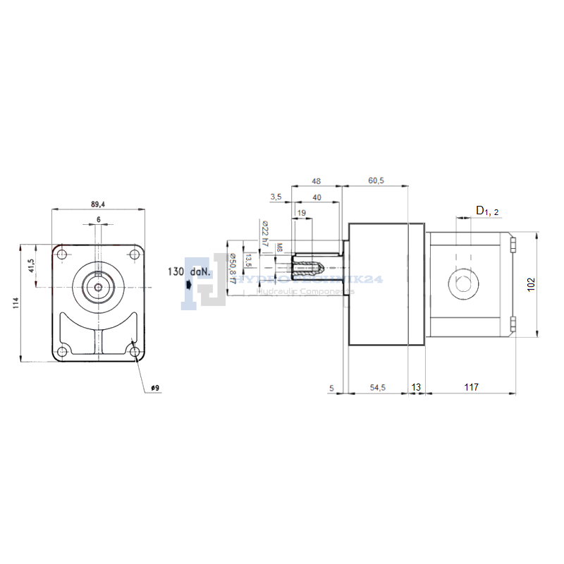 2. csoportba tartozó hidraulikus fogaskerekes szivattyú, jobb irányú, űrtartalom: 10cm3/ford., teljesítmény (1500ford/perc): 15L/perc, csapágykarimával ellátva