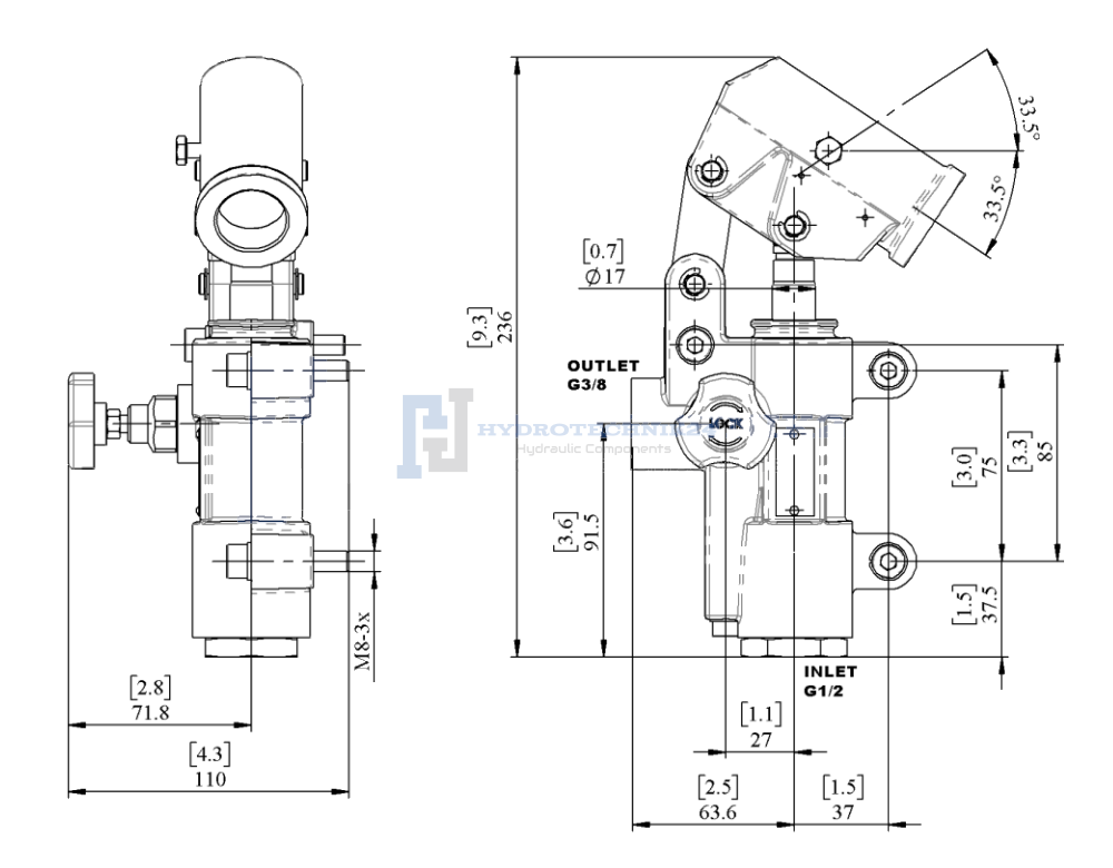 - Csőcsatlakozás a munkahenger oldaláról: belső vagy külső menetes BSP 3/8"