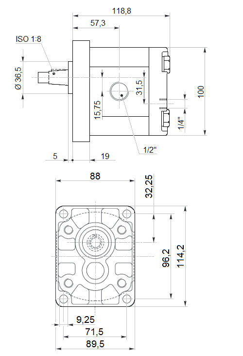 Fogaskerekes hidraulikus motor, folyadékszállítás: 19cm3/ford. fordulatszám: max. 3300ford./perc