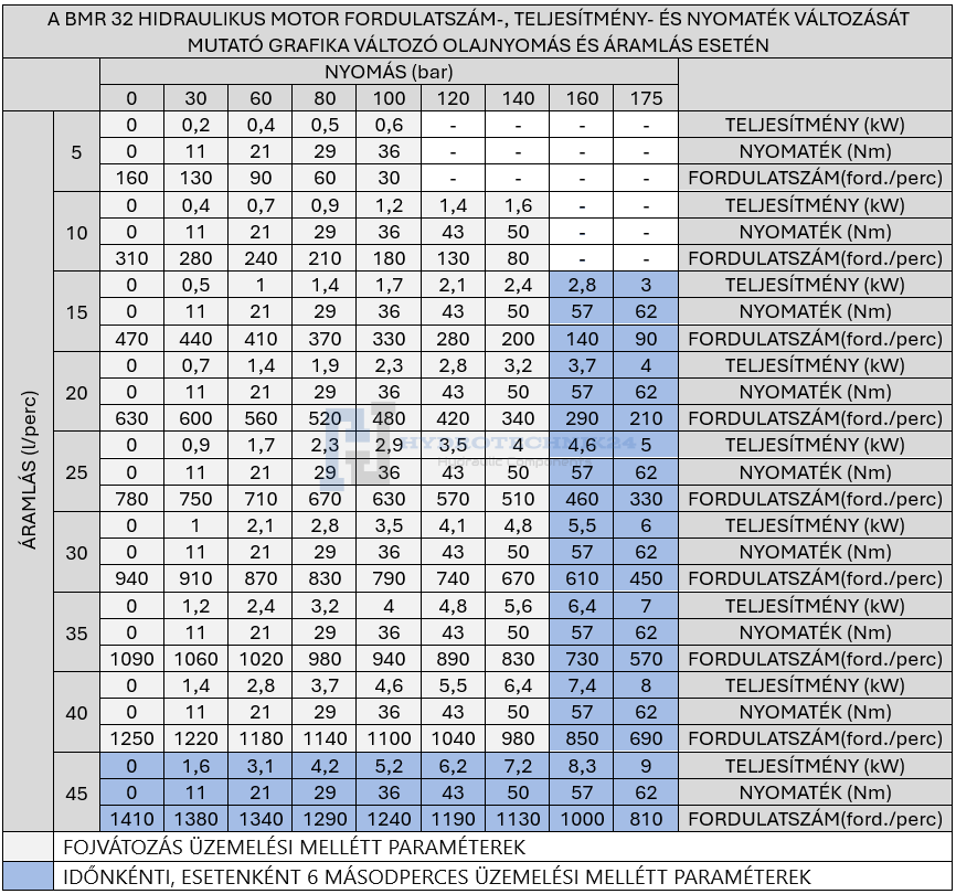 Hidraulikus motor BMR folyadékszállítás: 32cm3/ford. fordulatszám: 1150ford./perc tengely: 25mm