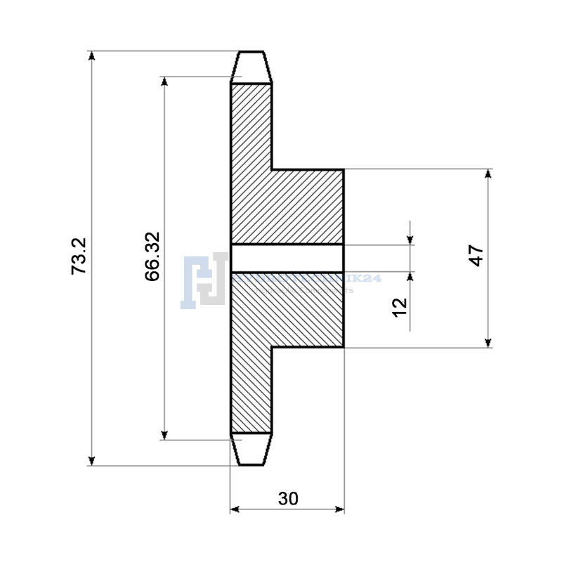 Lánckerék egysoros. Gépekben történő erőátvitelre szánt, hajtólánc segítségével. A lánckerék magas minőségű acélból készült a DIN8187-ISO/R606 szabvány szerint. Ez a hajtásátviteli módszer nagyon magas szilárdsággal és hosszú élettartammal rendelkezik.
