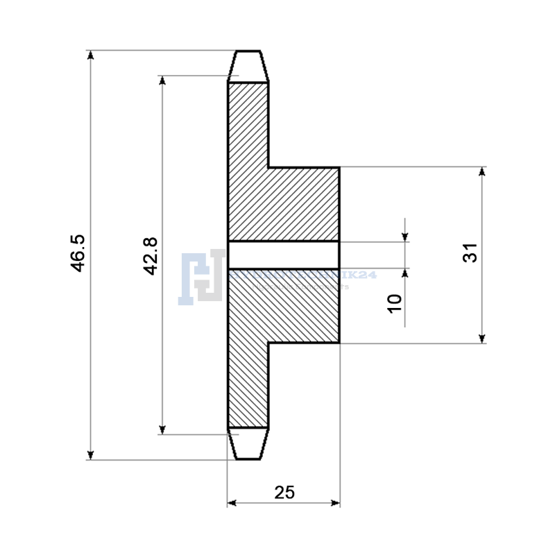 Lánckerék egysoros. Gépekben történő erőátvitelre szánt, hajtólánc segítségével. A lánckerék magas minőségű acélból készült a DIN8187-ISO/R606 szabvány szerint. Ez a hajtásátviteli módszer nagyon magas szilárdsággal és hosszú élettartammal rendelkezik.