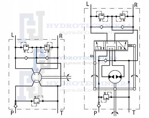 ON (OPEN NORMALLY) rendszerrel ellátott Kormányorbitrol 100 ON, amikor a kormány mozdulatlan az olaj folyamatosan kering a rendszerben és szabadon áthalad az orbiton keresztül a visszatérő vonalon át, egészen a tartályba. A szivattyú ilyenkor működik, de tehermentesítve van.