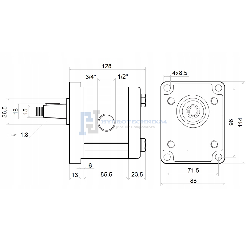 Hajtómű, rögzítő konzol és hidraulikus szivattyúval 26cc, csoprot 2, 53L/perc teljesítmény. Kisebb hajtómű