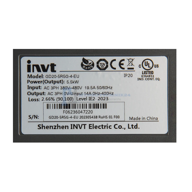 Háromfázisú vektoros frekvenciaváltó INVT GD20-5R5G-4-EU. Villanymotoro fordulatszám-szabályozó 400V 5,5kW
